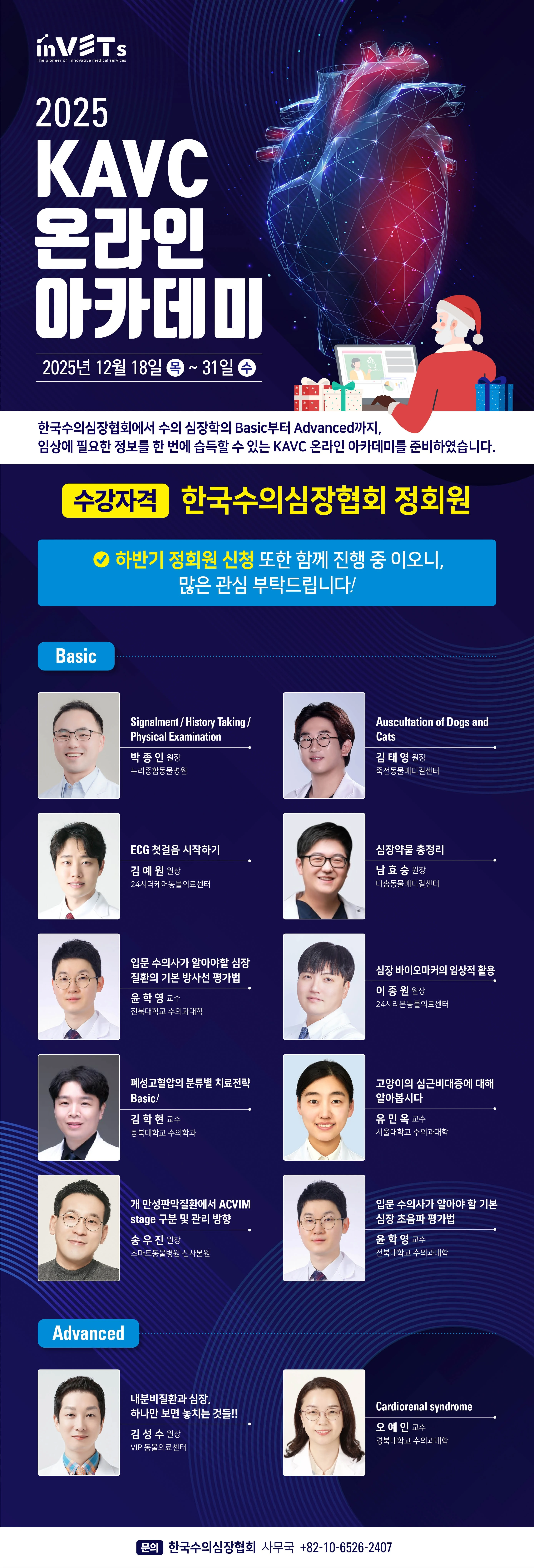 회원가입 및 수강 문의: 한국수의심장협회 사무국 (010.6526.2407)